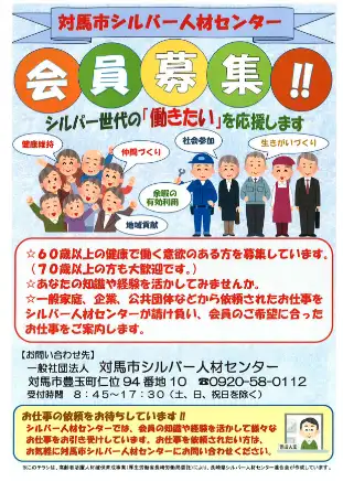 ■ 対馬市にお住まいの60才以上の方で、健康で働く意欲のある方なら、どなたでも会員になれます。